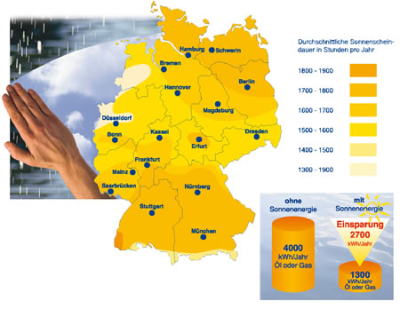 Die jährliche Sonneneinstrahlung in Deutschland ist für den Einsatz der Solarenergie vollkommen ausreichend.