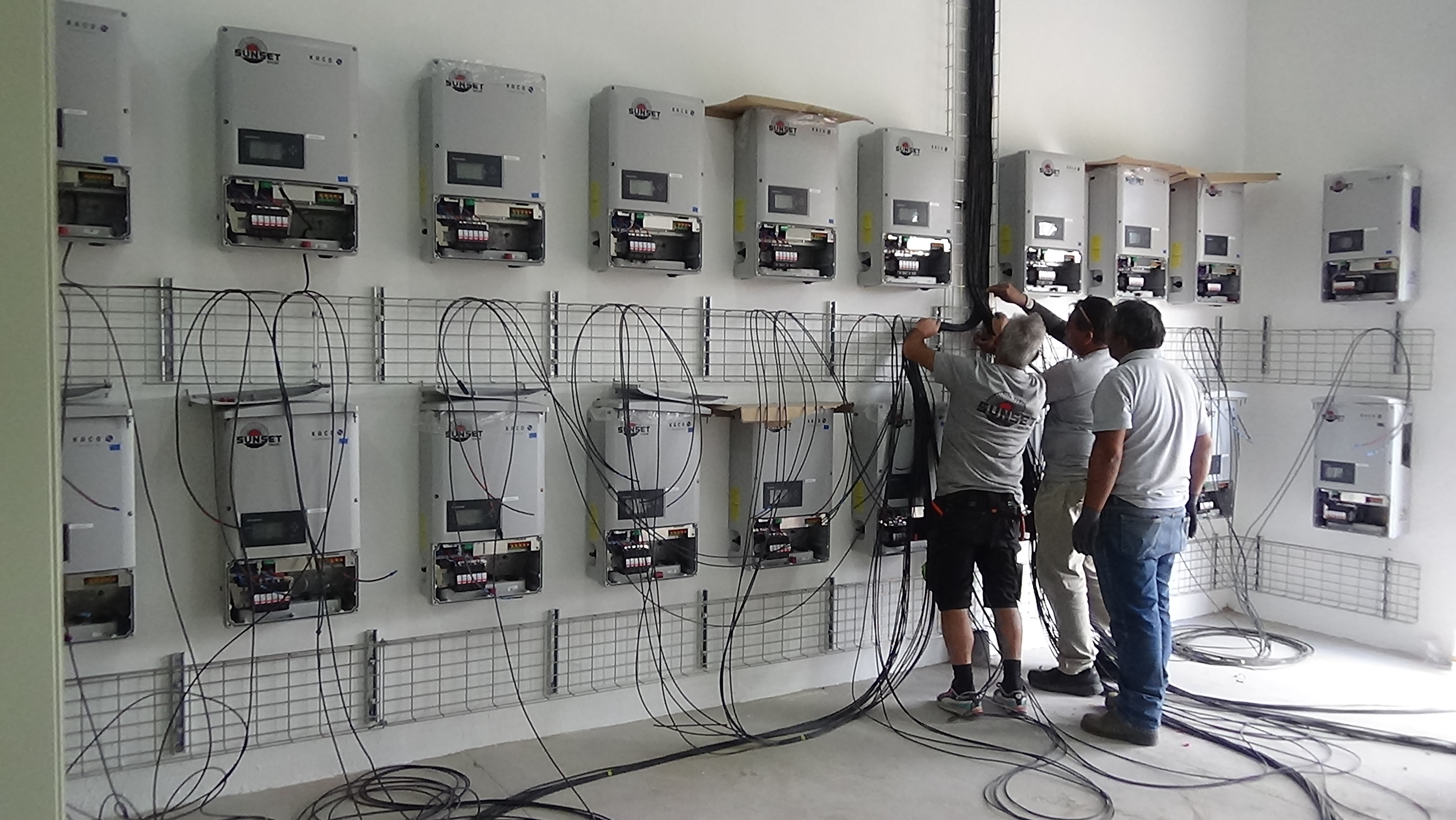 Die Wechselrichter des Projekts wurden im zentralen Technikraum platziert, um optimale Wartbarkeit und Kontrolle zu gewährleisten. Mit einer beeindruckenden Nennleistung von fast 470 kWp wurde das gesamte Projekt nach einem fortschrittlichen modularen Wechselrichterkonzept gestaltet. Dabei kamen 20 blueplanet 20.0 TL3 Wechselrichter zum Einsatz, die speziell leistungs- und orientierungsoptimierte als 3-phasige Einspeisung in das Gebäudenetz ausgelegt sind.