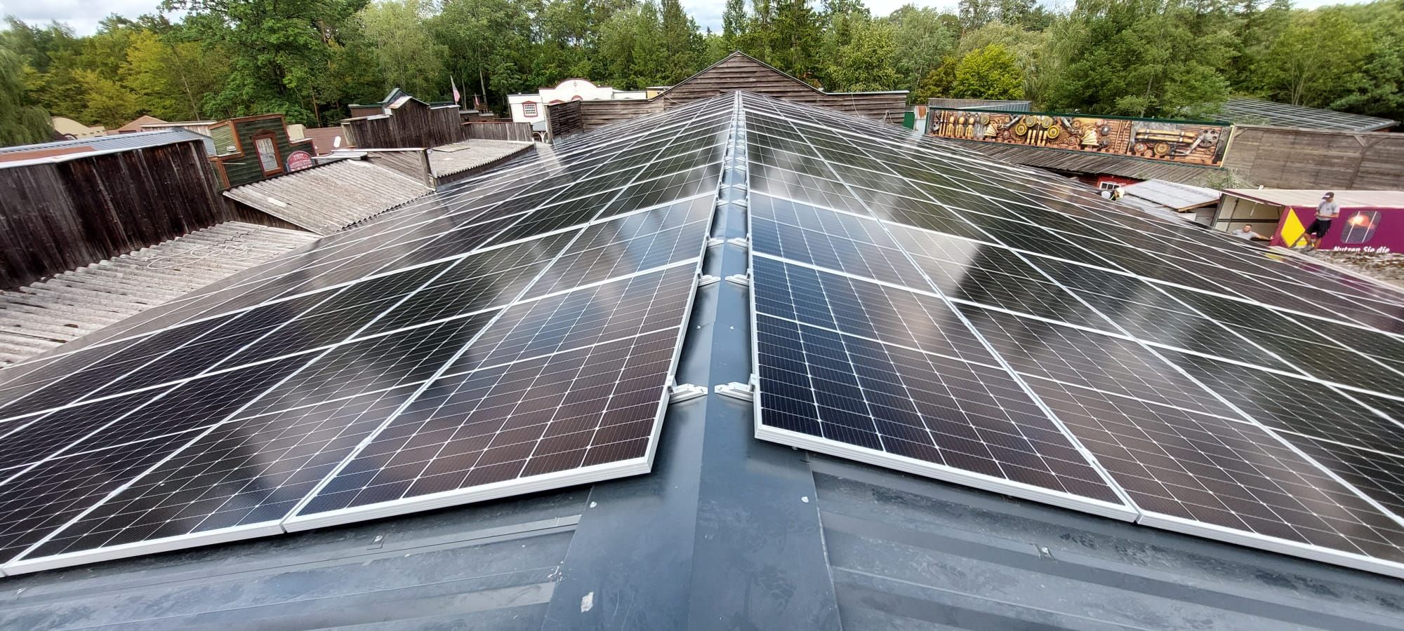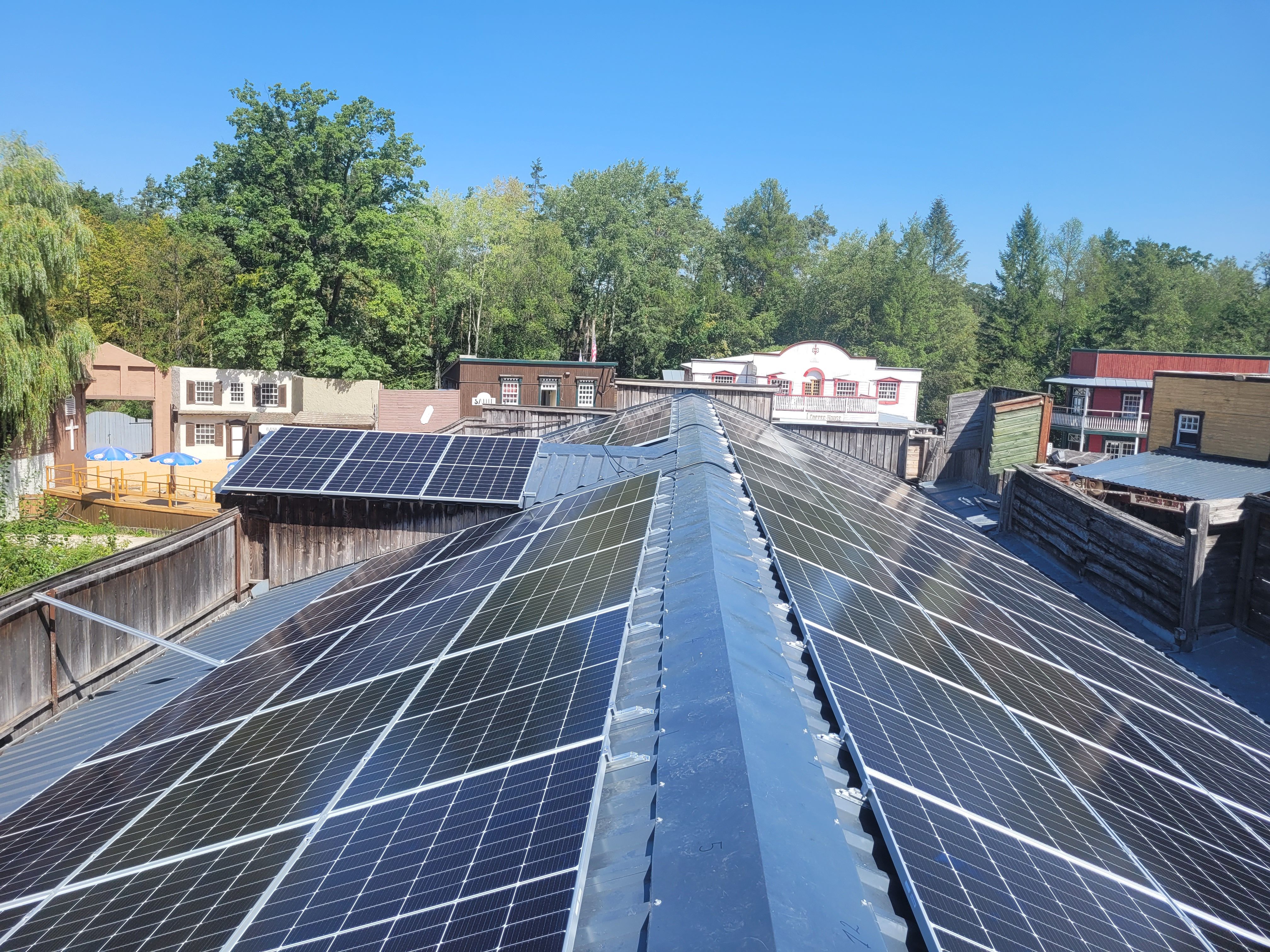 Die Westernstadt ist ein zentraler Bereich im Erlebnispark Schloss Thurn, frequentiert von Tausenden Gästen pro Jahr. Um den wachsenden Energiebedarf für Attraktionen, Beleuchtung und Gastronomie nachhaltig zu decken, hat der Park gemeinsam mit SUNSET eine großflächige PV-Anlage realisiert. Die Dachflächen eigneten sich ideal für eine modulare Anlage, die sowohl leistungsstark als auch wartungsfreundlich ist.